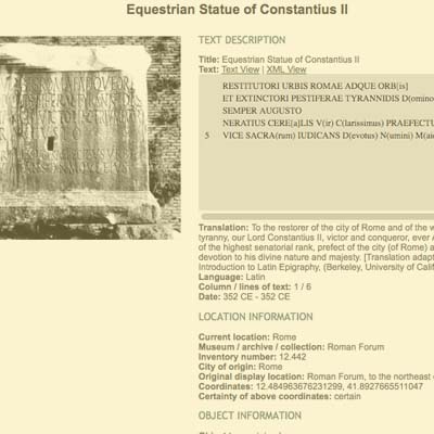The summer of 2010 I worked on the inscription database section of Digital Roman Forum project, part of UCLA's HyperCities initiative.